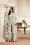 Nur is a refined three-piece ensemble designed with a modern, elegant silhouette—perfect for festive gatherings, formal events, or sophisticated daytime occasions. The outfit features a long, open-front jacket in a soft dusty rose tone, crafted from a jacquard whole-silk blend that offers both structure and graceful movement. Delicate pastel-toned floral embroidery is thoughtfully placed along the front borders, sleeves, and lower hem, complemented with subtle sequins or beadwork for a gentle, elevated shimmer.