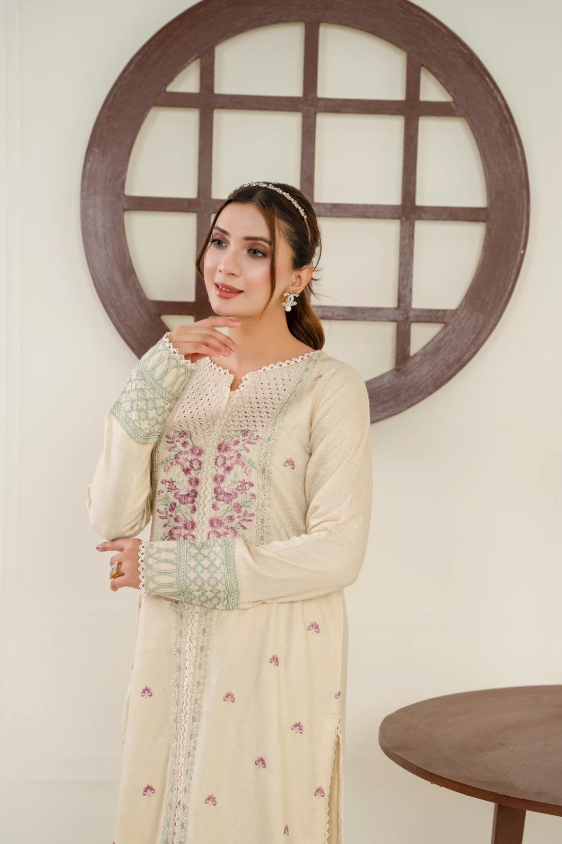 Additional Description: Front Open Dyed Shirt With Embroidery. Neckline , hem & chawk finshied with lace . Full Seleves with Embroidery .