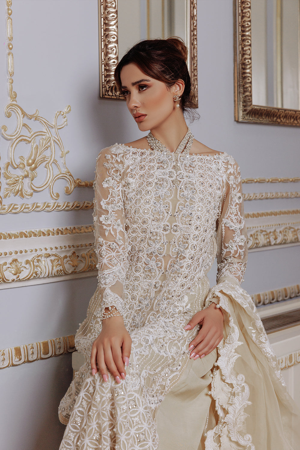 - Embroidered and Embellished Front Right Panel (Organza) 1-PC