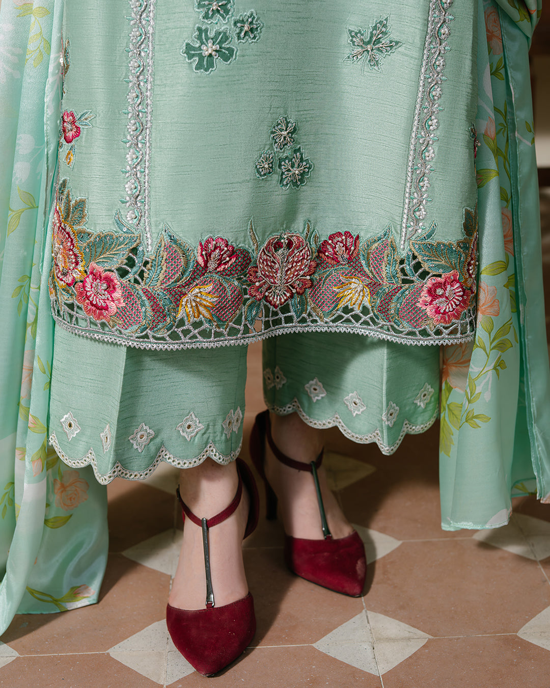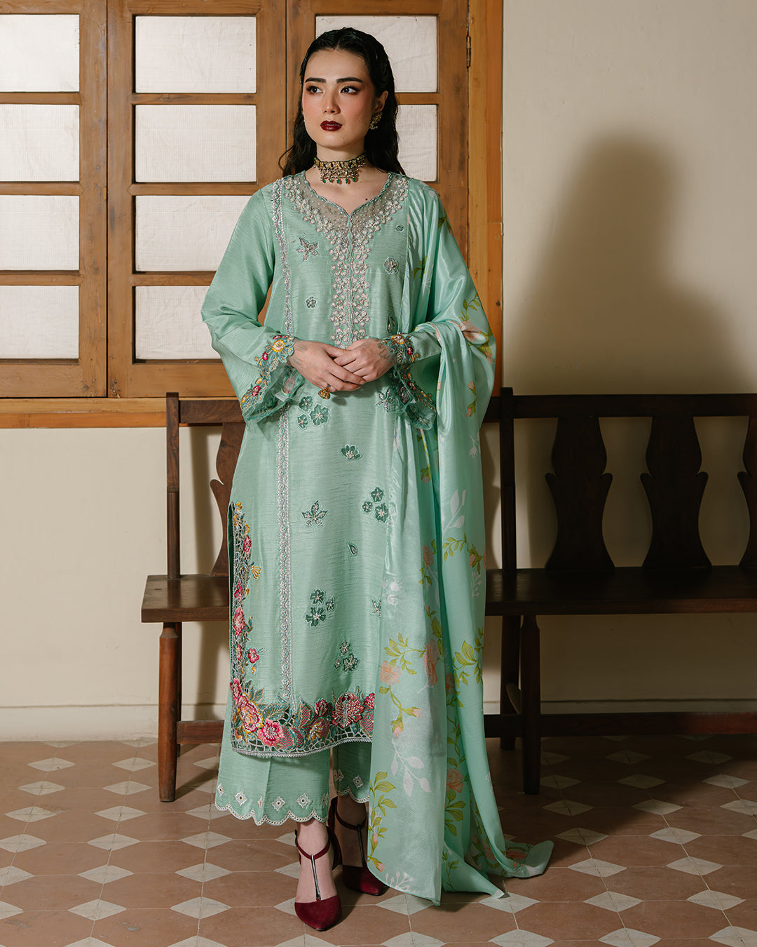 Dupatta: A flowy Silk Dupatta completes the ensemble, adding a soft, luxurious touch.