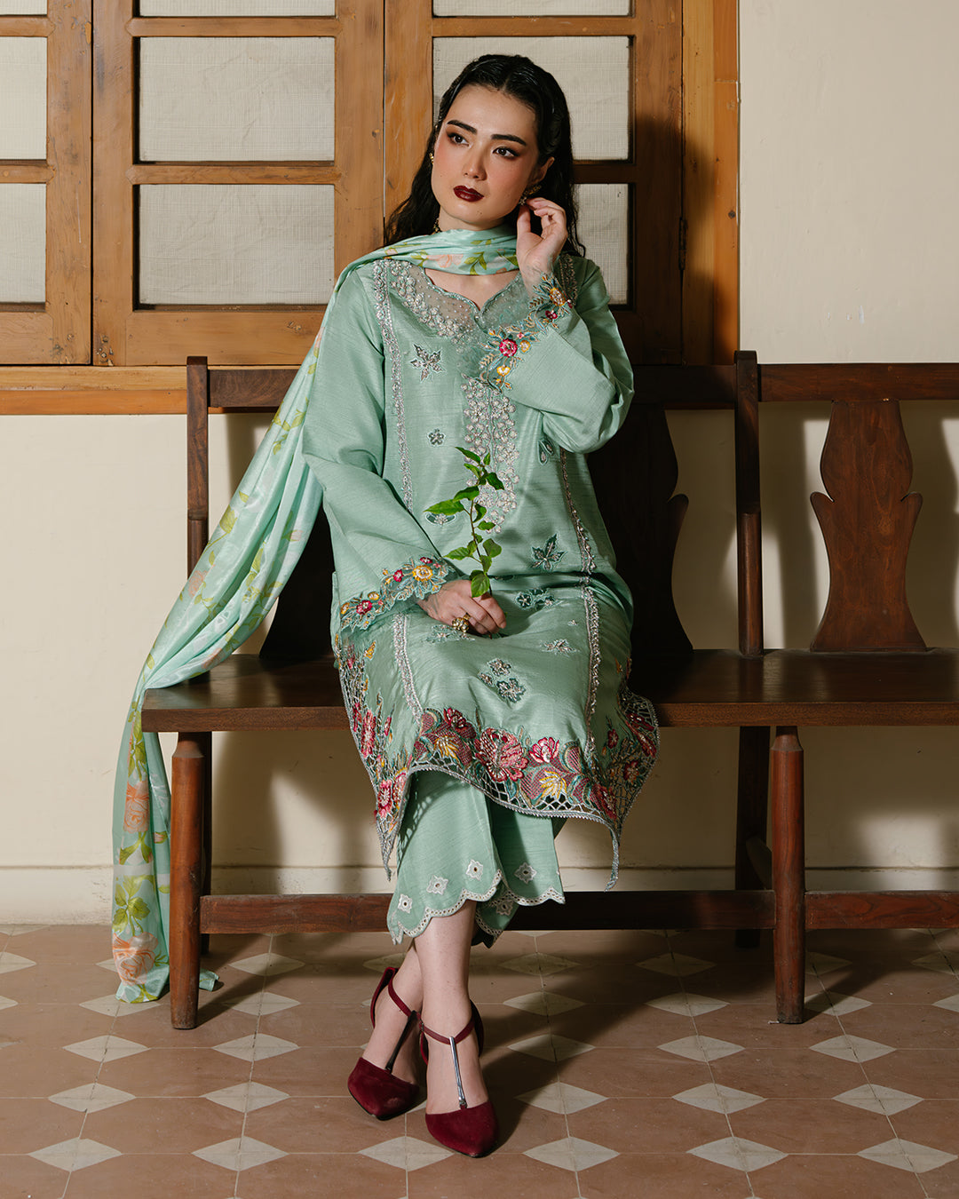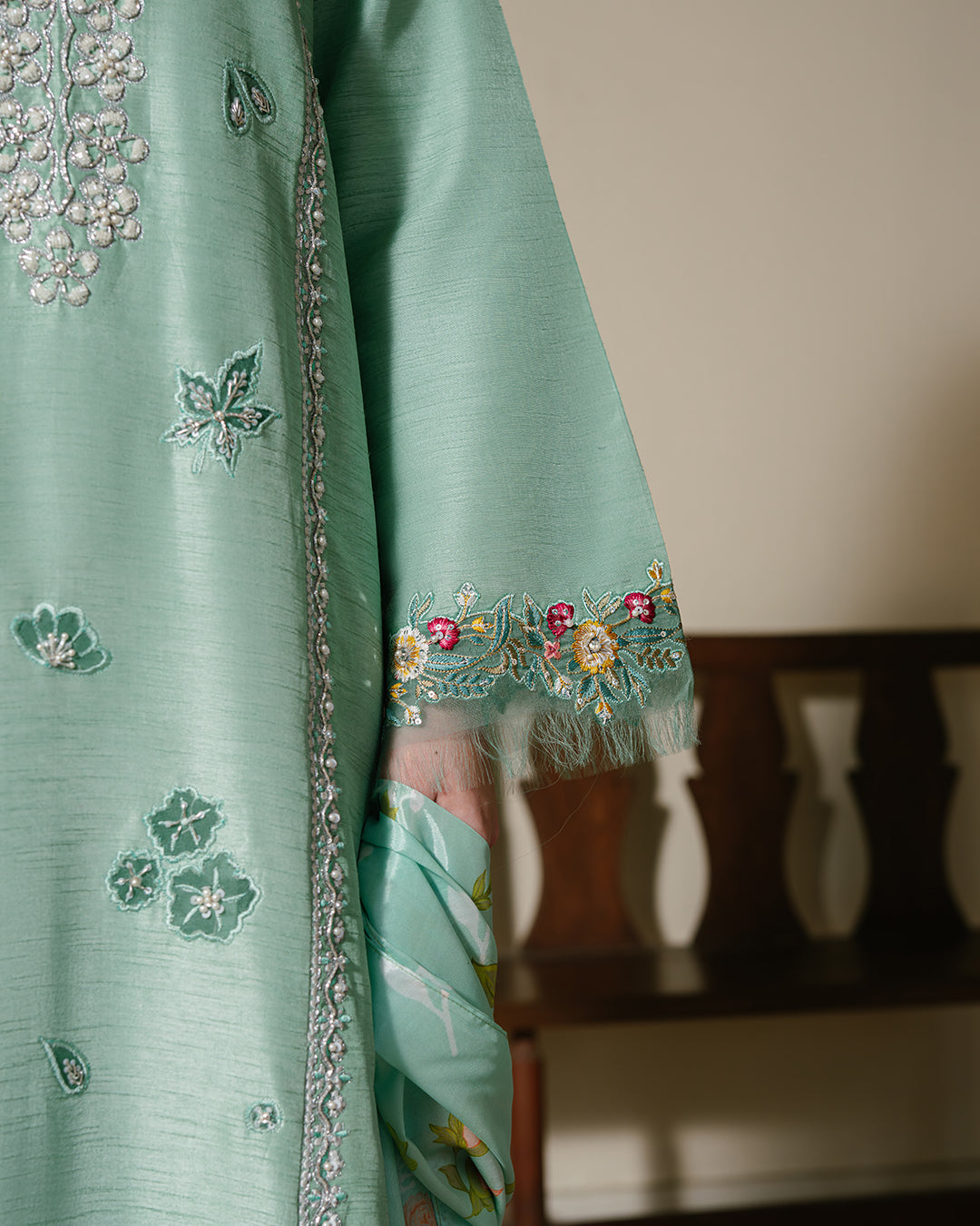 Step into refined elegance with Elora, a beautifully crafted ensemble in a refreshing Aqua shade, perfect for daytime festivities and serene celebrations.
