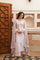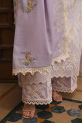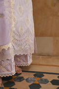 Opal is an ode to the soothing breezes of fall, with its beautiful ice-blue hue and karandi base, fashioned into a 3-piece outfit with impeccable cutwork embroidery. The shirt has a substitute digital print in subtle shades of cream, pink, and green layered with embroidered cutwork in a creme color for sleeve edge that enhances the design. Complemented by cutwork details that enhance the design. Paired with plain trousers and a embroidered edged dupatta, delicately finished with cutwork, this ensemble captures the harmonious spirit of the season.