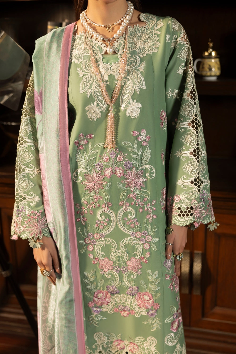 - EMBROIDERED SLEEVES ON LAWN 26INCHES