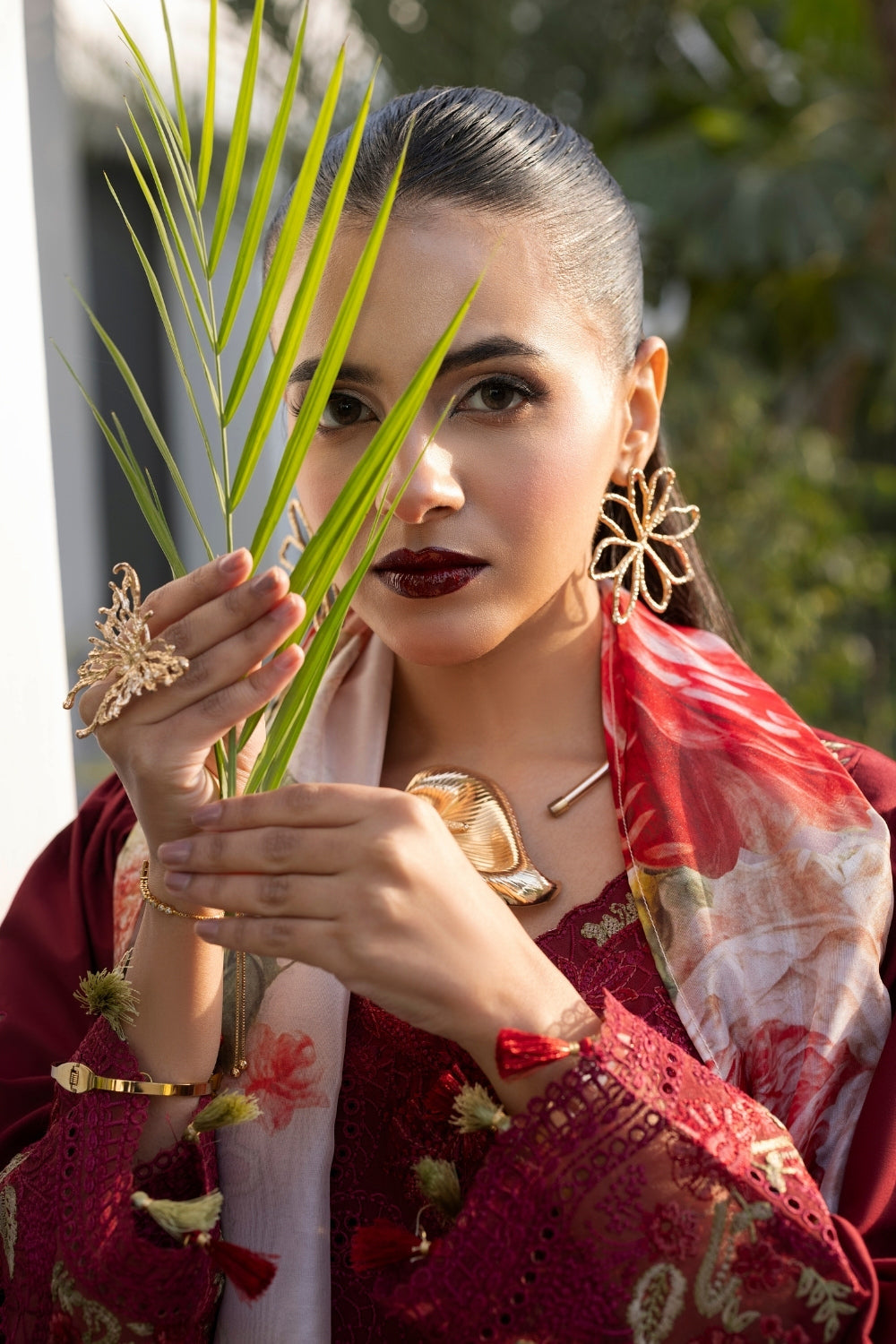 Featuring intricate embroidered chikankari details on the front, side panels, and sleeves, this piece is beautifully complemented by an organza border. It is paired with a dyed cambric trouser and a stunning silk-printed dupatta.