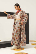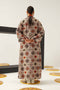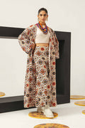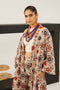A mesmerizing composition is layered on this subtle coconut milk canvas. It features an efflorescent amalgamation of red rose, blue and yellow that accentuate the perfect khaddar canvas. This playful suzani design perfectly encapsulates the spirit of winters and is one of the favourites in this collection.
