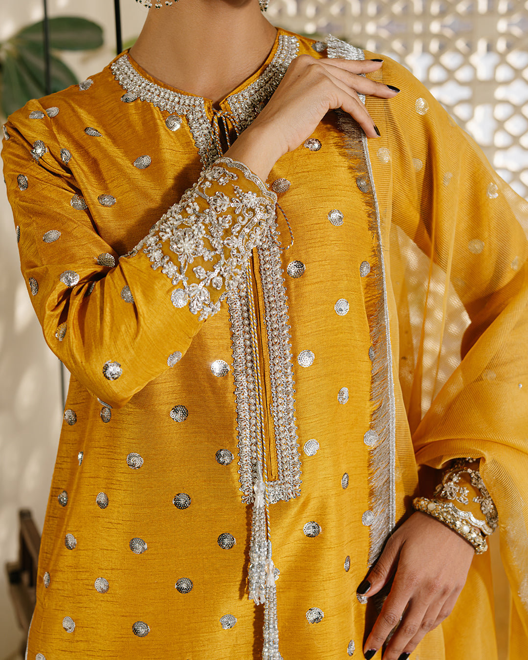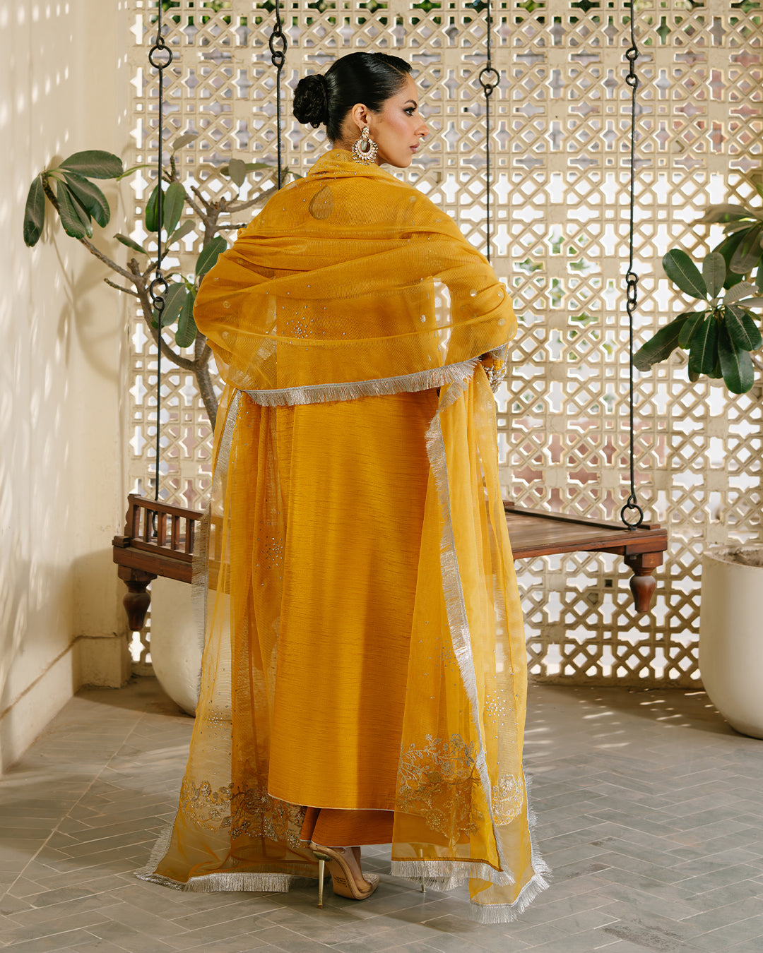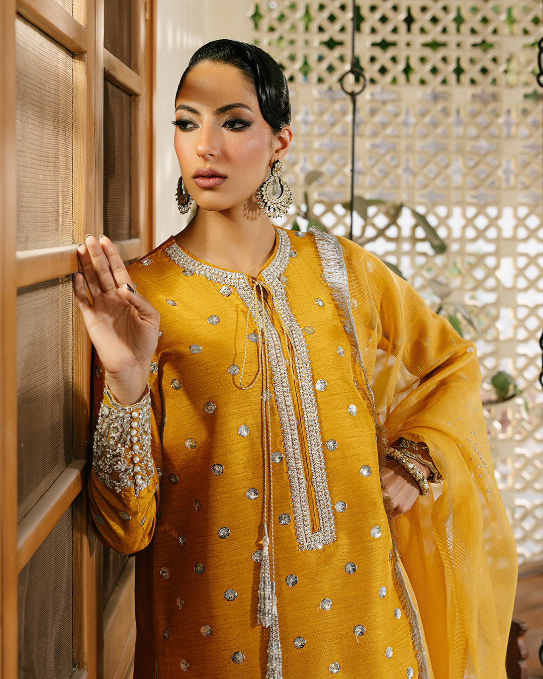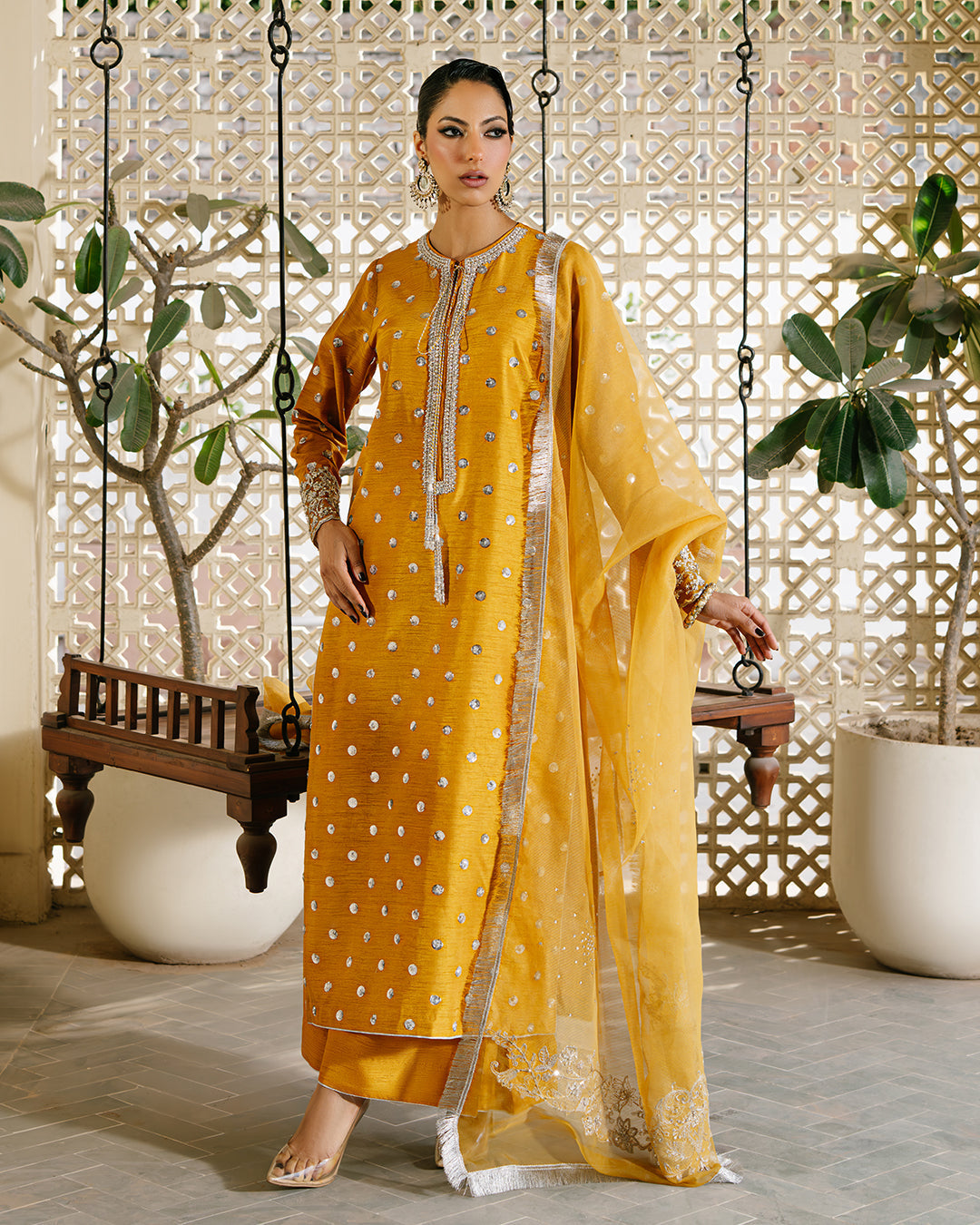 Radiate warmth and joyful elegance with this stunning ensemble in Ocar Yellow β a vibrant choice that captures the essence of celebration.