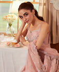 Orsa, a breathtaking vision in blush pink, captures the essence of a fairytale dream. This stunning creation is embellished with detailed embroidery, sequins, and delicate tilla work, intricately forming a floral masterpiece. The fabric glistens with beads, gemstones, and crystals, imbuing Orsa with an air of elegance and refinement. Complementing this outfit is a soft organza dupatta, adorned with sequin cutwork, adding an extra touch of regal allure.